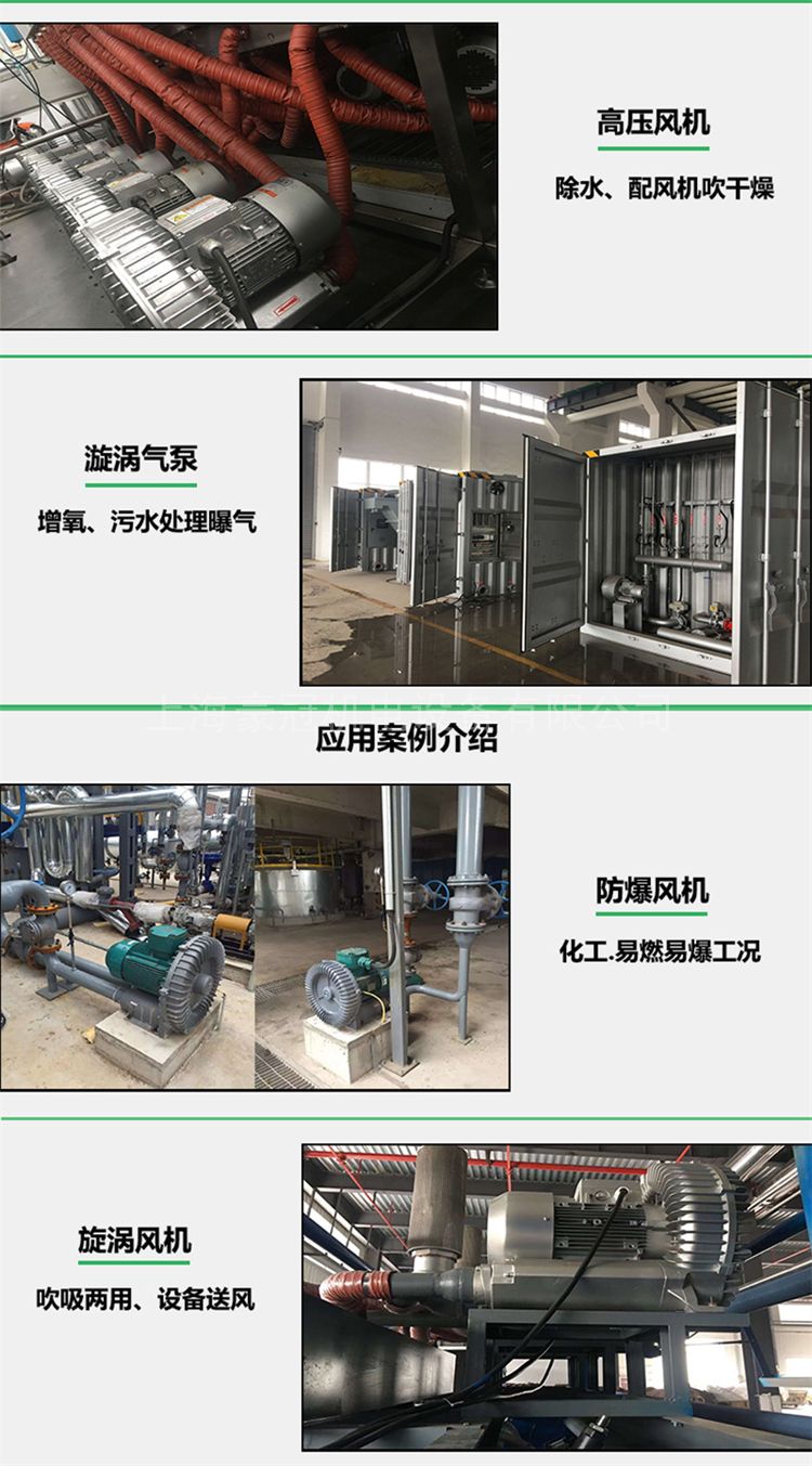 二.吹风功能:瓦斯重油喷燃、洗瓶机吹干、纸布条吹送、干燥用空气刀、裁断机气垫、畜粪发酵爆气、电解液搅拌、养殖池氧气补给、冲床机便利冲压后取成型品、粉粒体输送、焚化炉排废、烟气吹吸、洗车吹干、印刷机强制干燥、洗净后吹干。注意事项